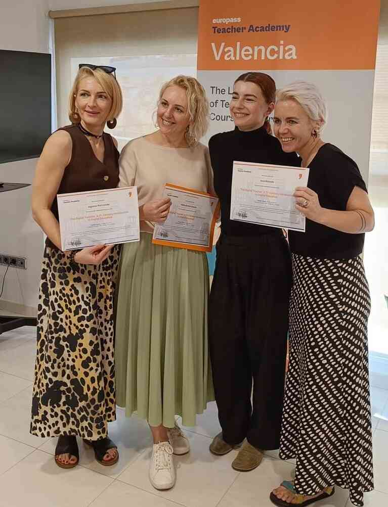 Projekta laikā skolotājas apguva jaunākās digitālās prasmes, īpaši – mākslīgā intelekta rīkus, kas palīdzēs ikdienas darbā padarīt mācību procesu radošāku, modernāku un efektīvāku. Ļoti vērtīga bija iespēja iepazīt pedagogu pieredzi no citām Eiropas valstīm un izprast izglītības iestāžu darba specifiku starptautiskā vidē. Paralēli intensīvajām mācībām skolotājas iepazina arī Valensijas kultūru, tradīcijas un pilsētas neatkārtojamo atmosfēru.